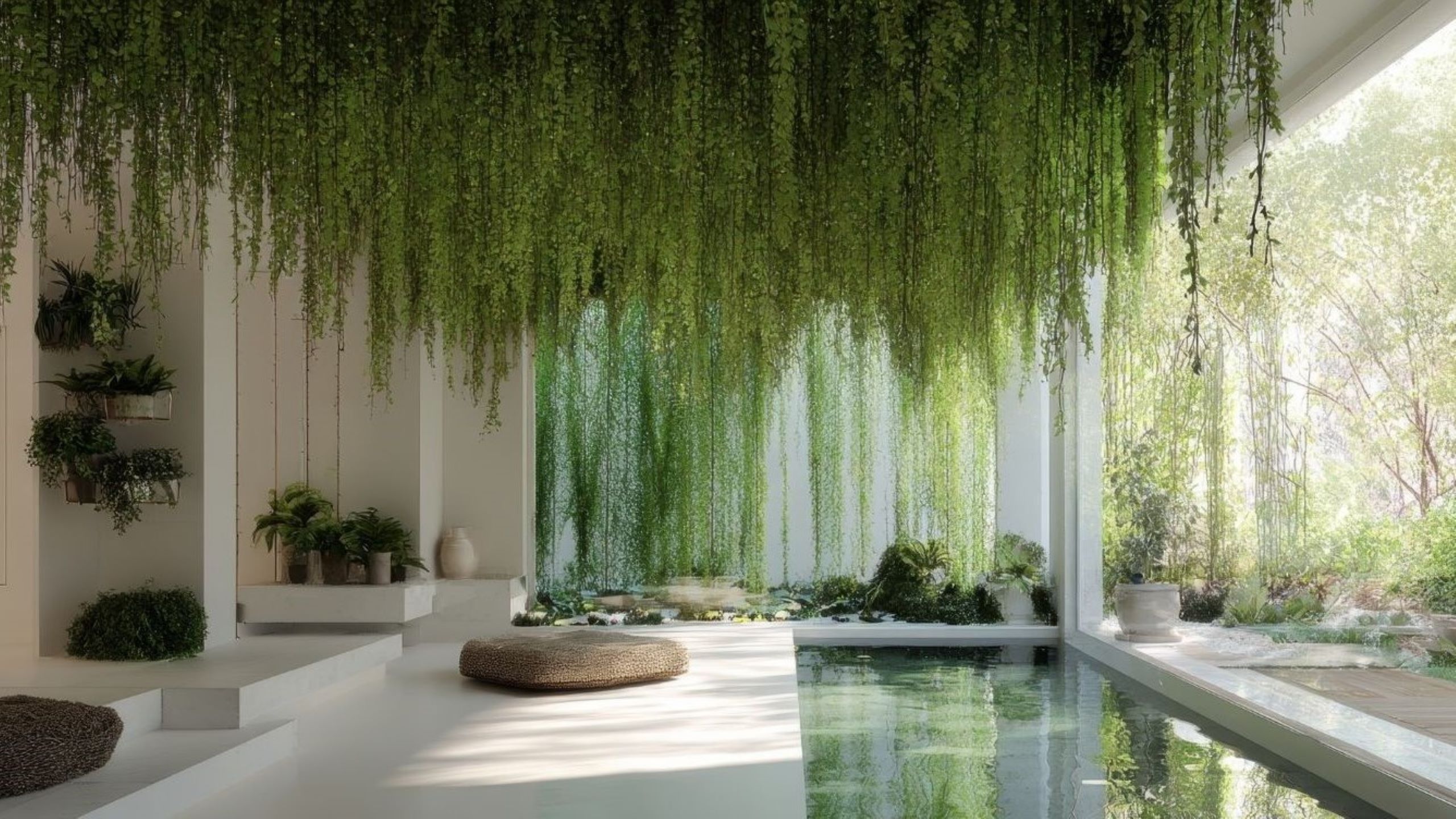 生物亲和室内设计,融入郁郁葱葱的室内植物、水景喷泉和充足的自然光线,营造宁静、受自然启发家居环境